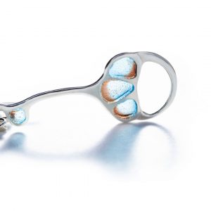 Made from Argentium silver, using the centuries-old plique-à-jour enamelling technique, which looks like stained glass windows, each piece is entirely unique due to its handmade nature. Argentium silver contains a slightly higher content of pure silver than traditional sterling and an added element of germanium. This makes the pieces hypoallergenic and tarnish resistant.