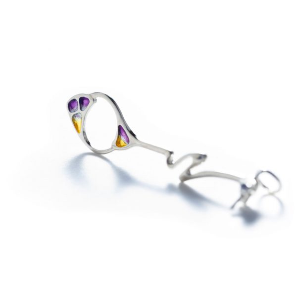 Made from Argentium silver, using the centuries-old plique-à-jour enamelling technique, which looks like stained glass windows, each piece is entirely unique due to its handmade nature. Argentium silver contains a slightly higher content of pure silver than traditional sterling and an added element of germanium. This makes the pieces hypoallergenic and tarnish resistant.