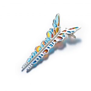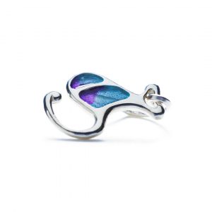 Made from Argentium silver, using the centuries-old plique-à-jour enamelling technique, which looks like stained glass windows, each piece is entirely unique due to its handmade nature. Argentium silver contains a slightly higher content of pure silver than traditional sterling and an added element of germanium. This makes the pieces hypoallergenic and tarnish resistant.