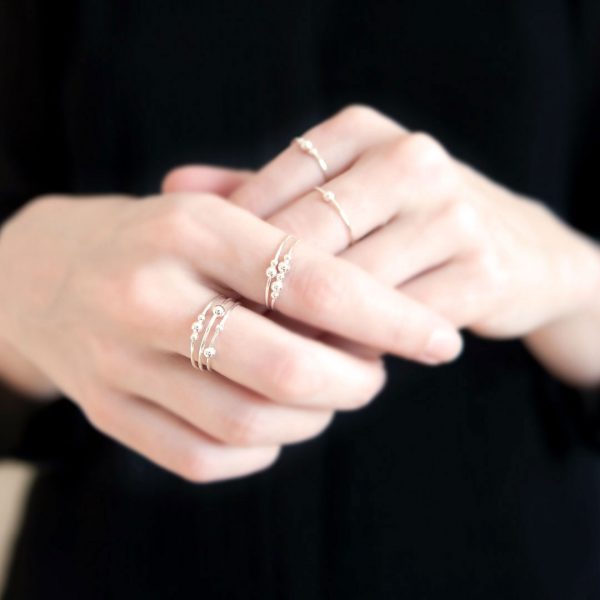Delicate yet powerful the Orbit stacking rings come in a myriad of designs. From one shiny silver bead to many – the choice is yours! Design your own set or contact us for creative advice, either way, these little sparklies are a guaranteed conversation starter.